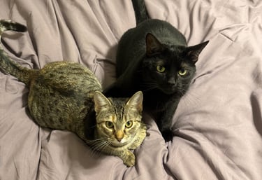 When we’re not behind the camera, we’re home in pajamas with our three beautiful cats, watching scary movies or playing Mario Kart.